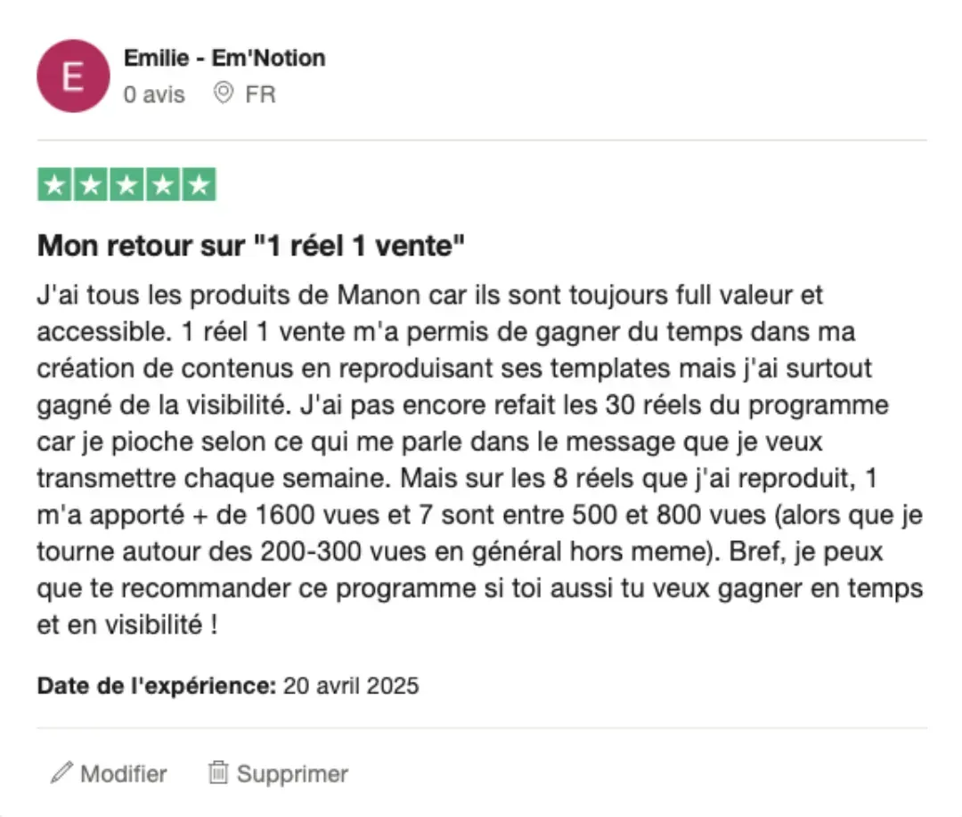 Oui ! J'ai vendu +100k€ de produits digitaux grâce aux templates de Reels du système 1 Reels = 1 Vente.