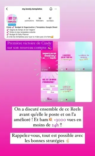 Rassure-toi c'est tout à fait possible pour toi MÊME si tu pars de zéro !! Cindy, une de mes coachés a créé son compte Instagram et a directement atteint +3700 vues après avoir suivi un de mes templates et 3 personnes ont téléchargé son produit digital.