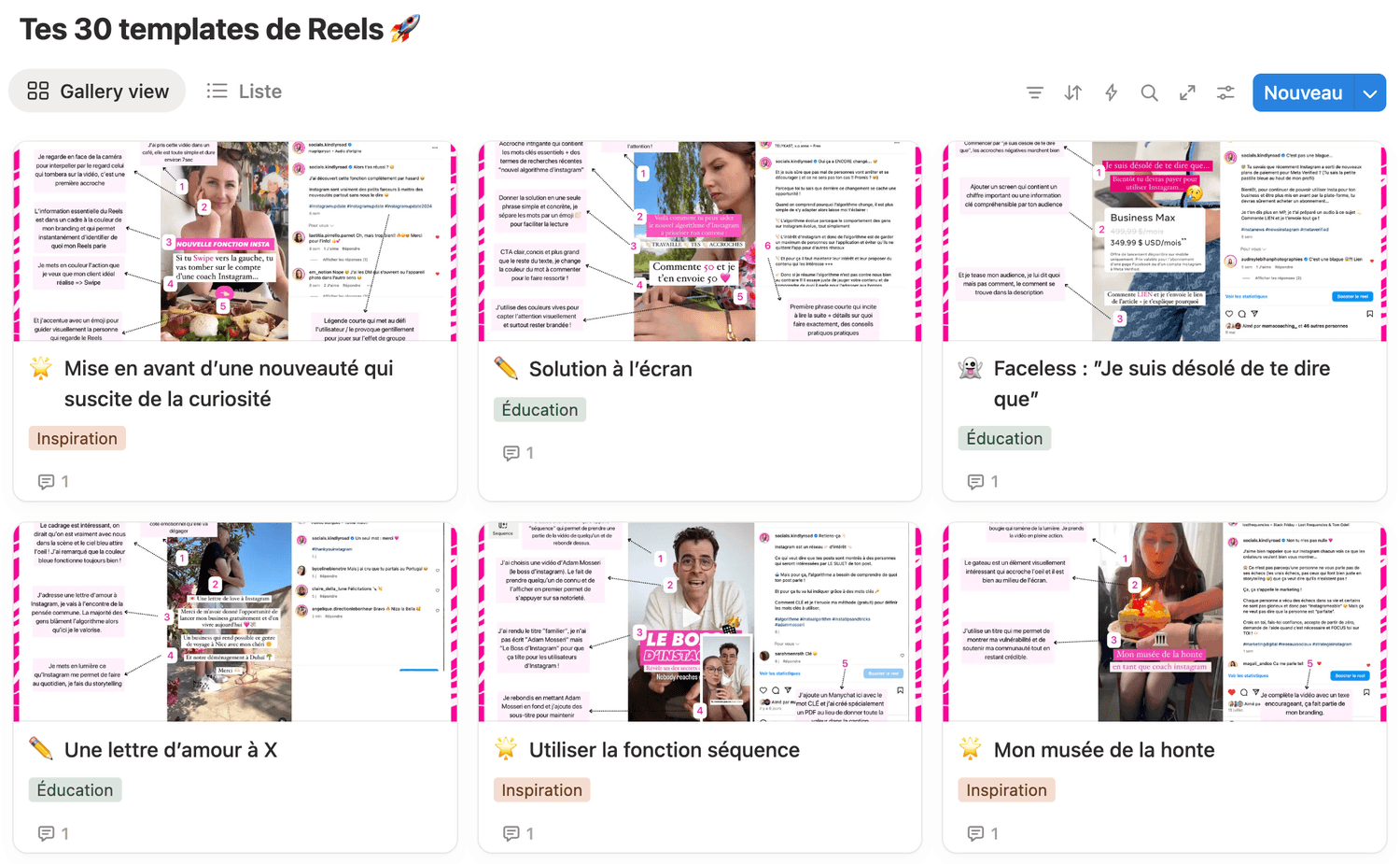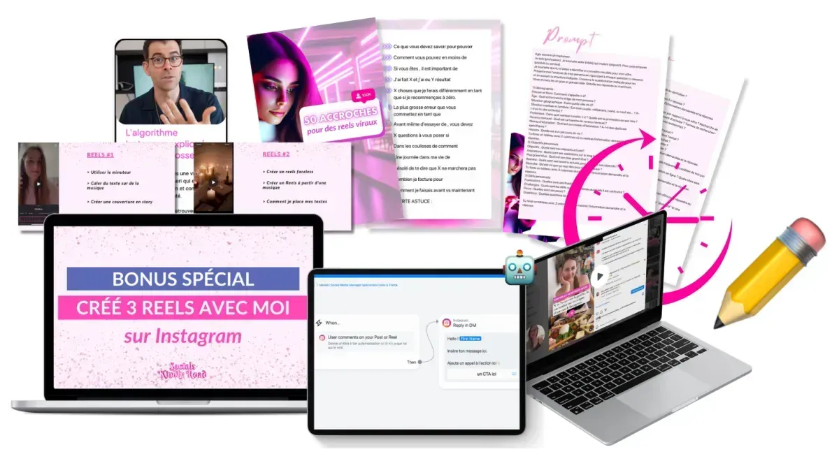 30 modèles de Reels à copier coller + mon modèle d'automatisation Manychat