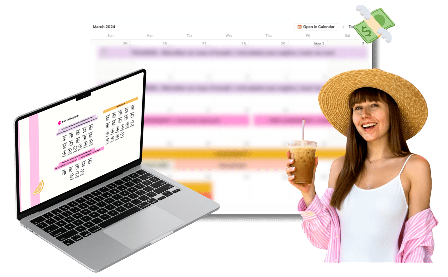 Tous les contenus sont déjà rédigés pour toi, il te suffit de les placer sur le calendrier et les poster !