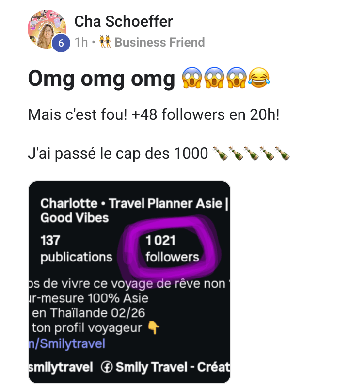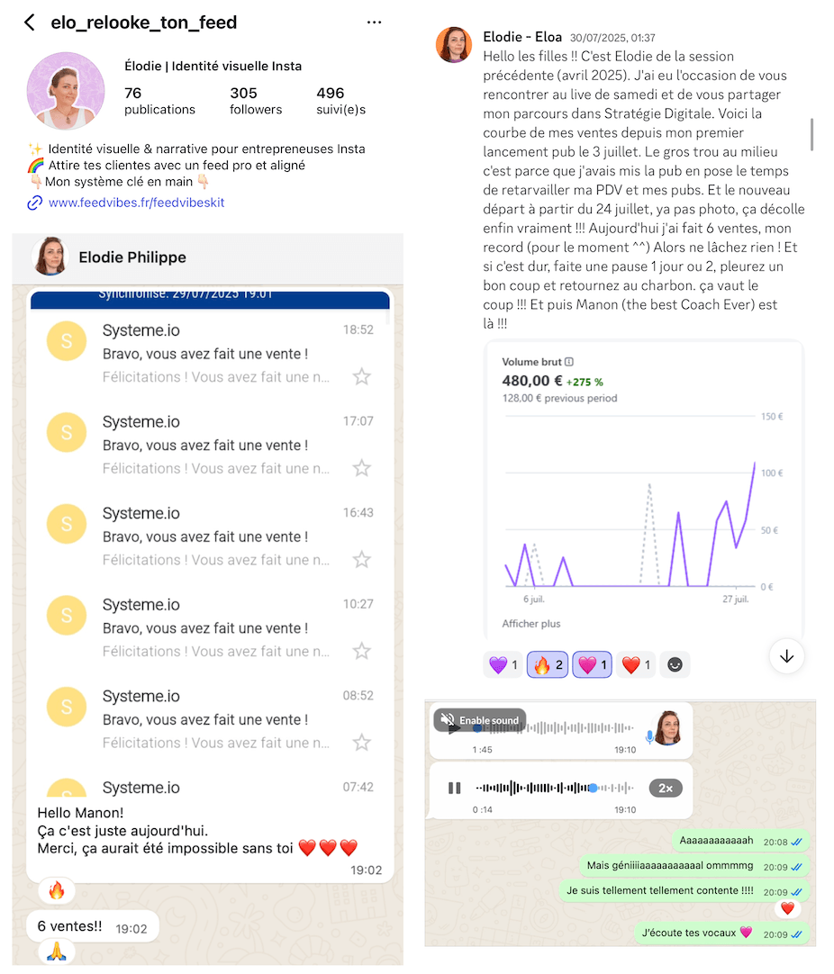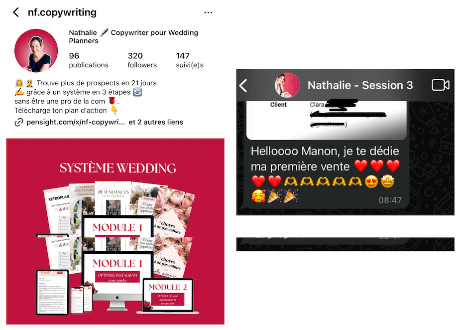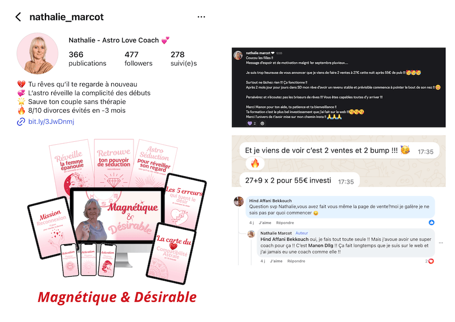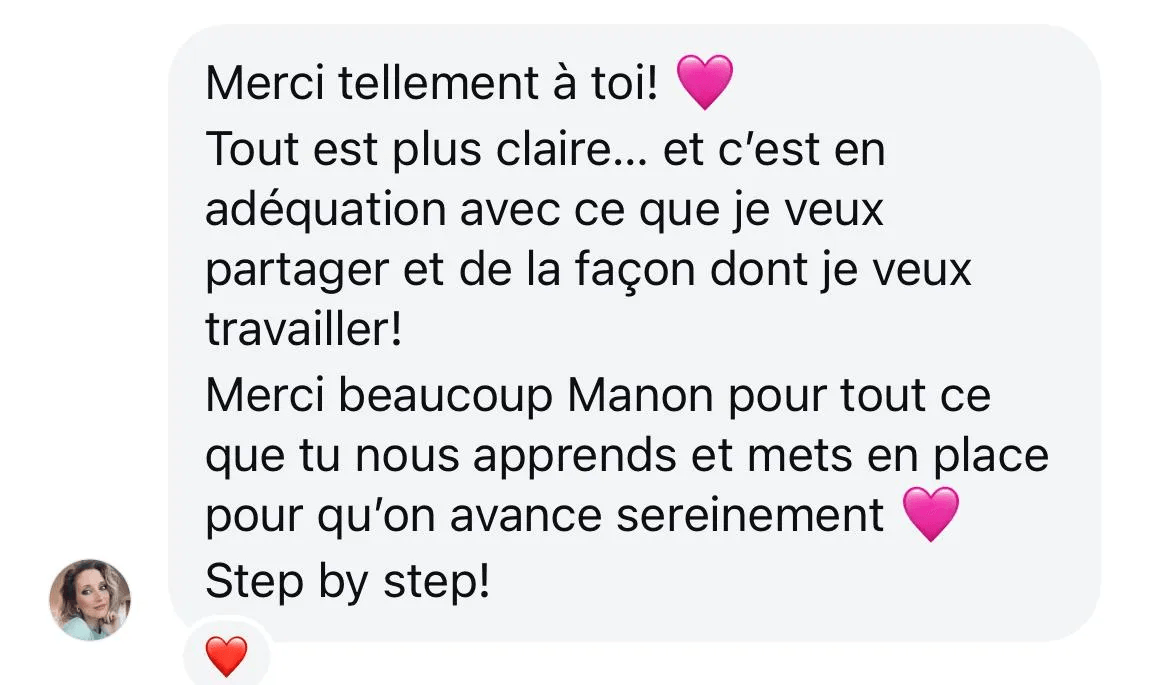 Tu sauras exactement à qui tu t’adresses et quoi publier pour transformer ton audience actuelle en clientes AVANT même que le programme ait débuté.