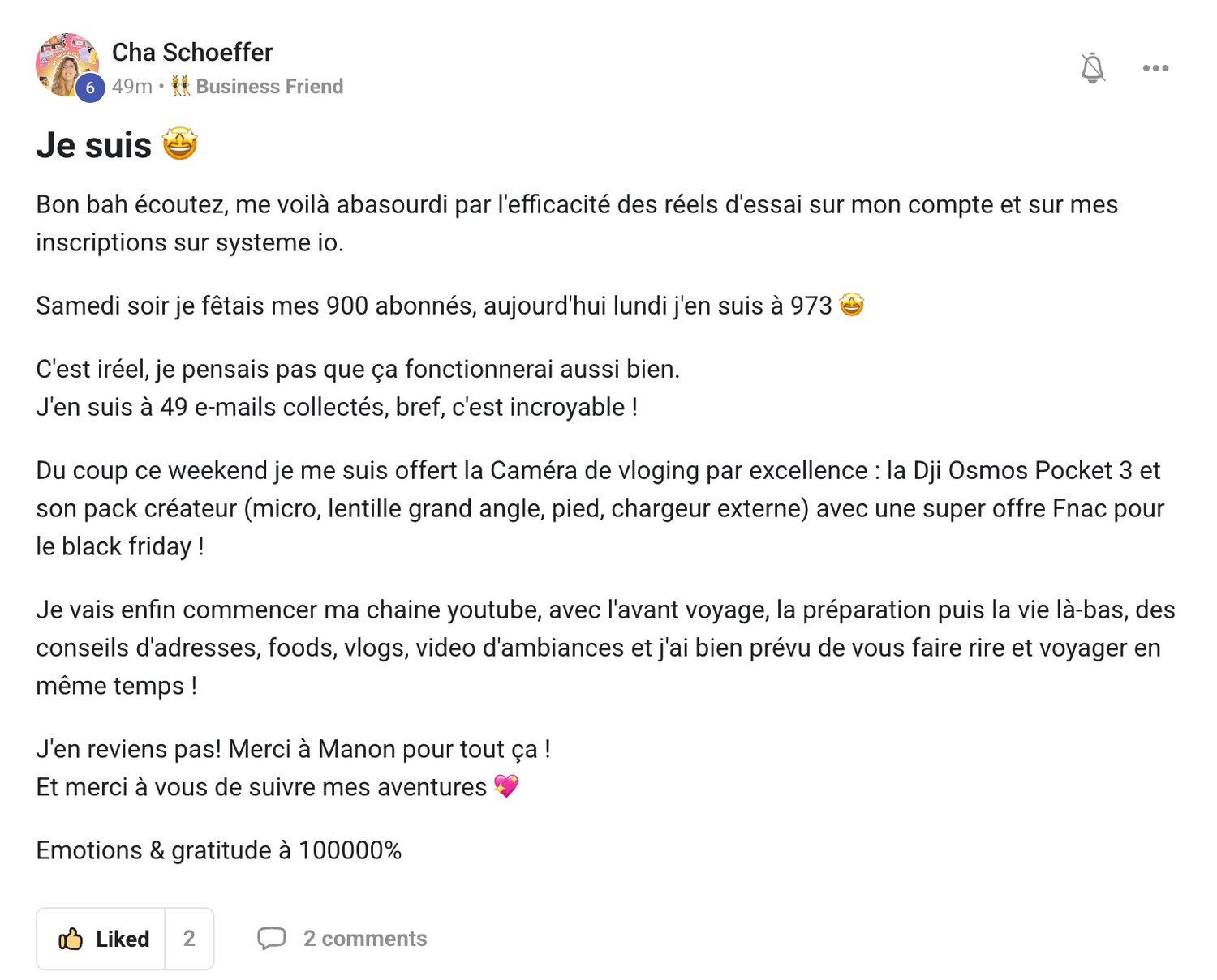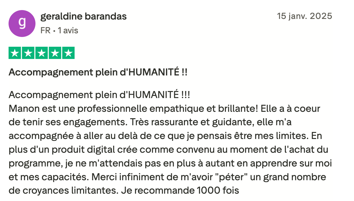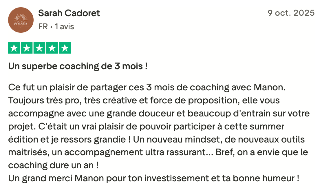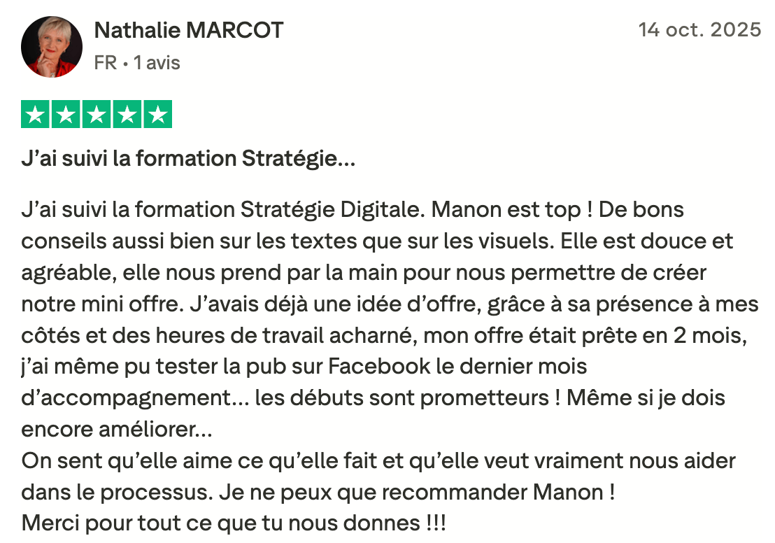 Onboarding 1:1 (30 min) : Je te livre tout ça lors d'un visio en 1:1 juste toi et moi, tu pourras me poser directement tes question !