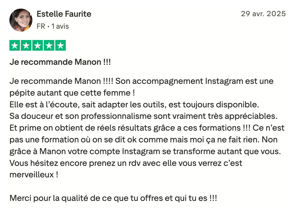 Je t'offre une analyse de ton compte Instagram en profondeur pour te designer une stratégie de contenu 100% sur-mesure.