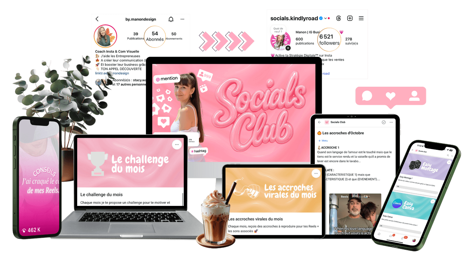 La communauté : Rejoins des femmes entrepreneures comme toi et des Lives avec moi pour être au courant des nouveautés instagram mais aussi faire revoir ton contenu