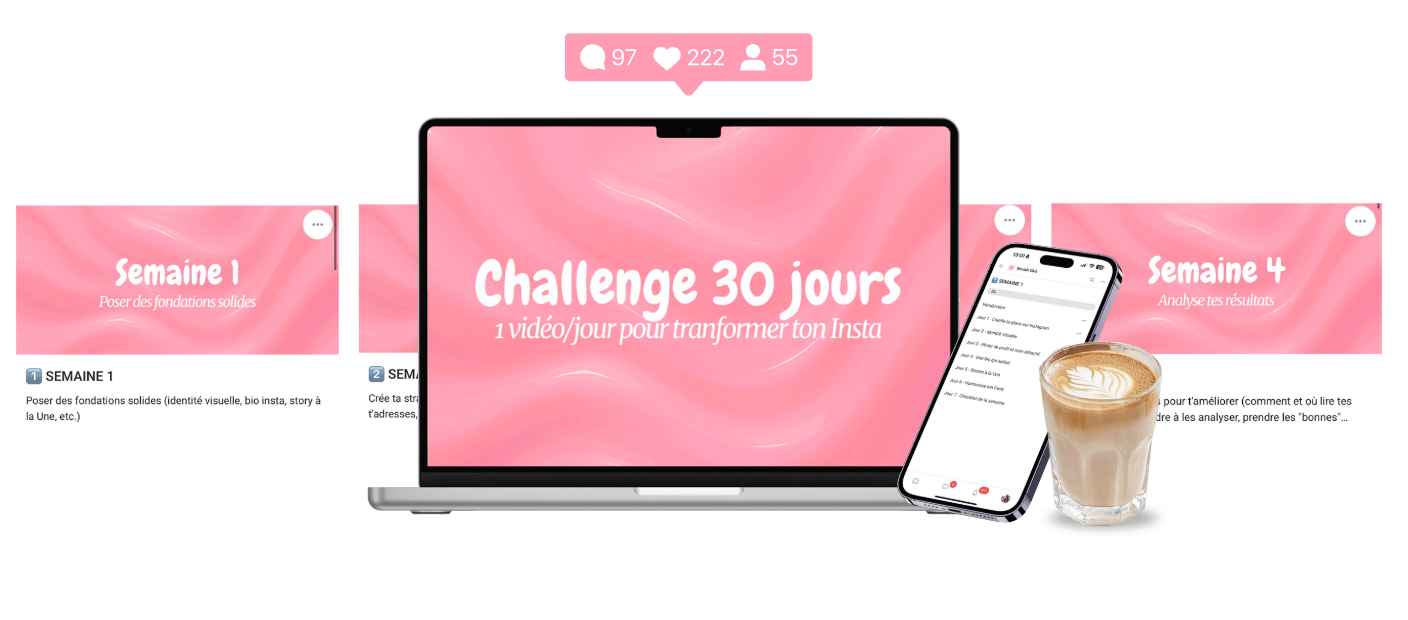 À la fin du challenge → tu as un compte Instagram clean, optimisé et surtout, tu sais exactement comment l’utiliser pour faire grossir ta communauté 😈