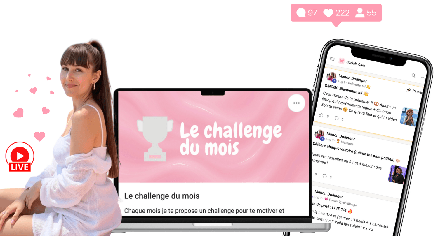 👉 Chaque mois, tu reçois du contenu prêt à l’emploi pour ne plus jamais être à court d’idées ! (un peu comme si j'étais ta CM attitrée)