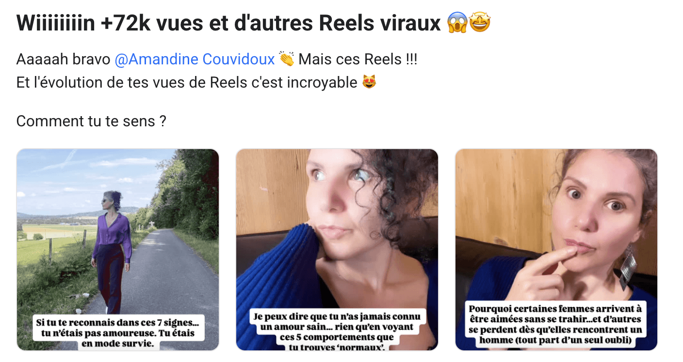 3 Reels viraux et de nombreux abonnés en plus, une communauté beaucoup plus réactive