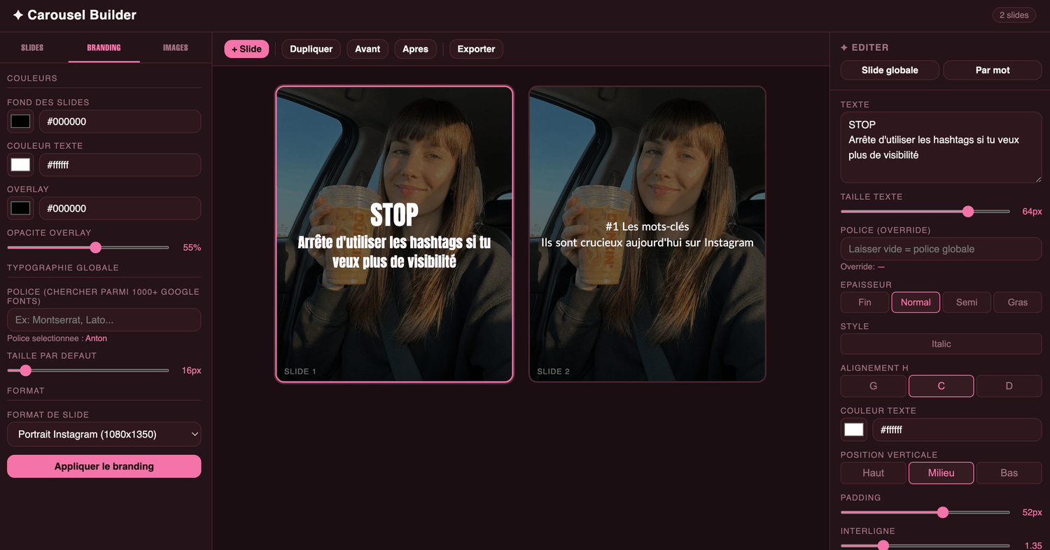 Accède aux dernières nouveautés IA comme ce carrousel builder compris dans ton abonnement !