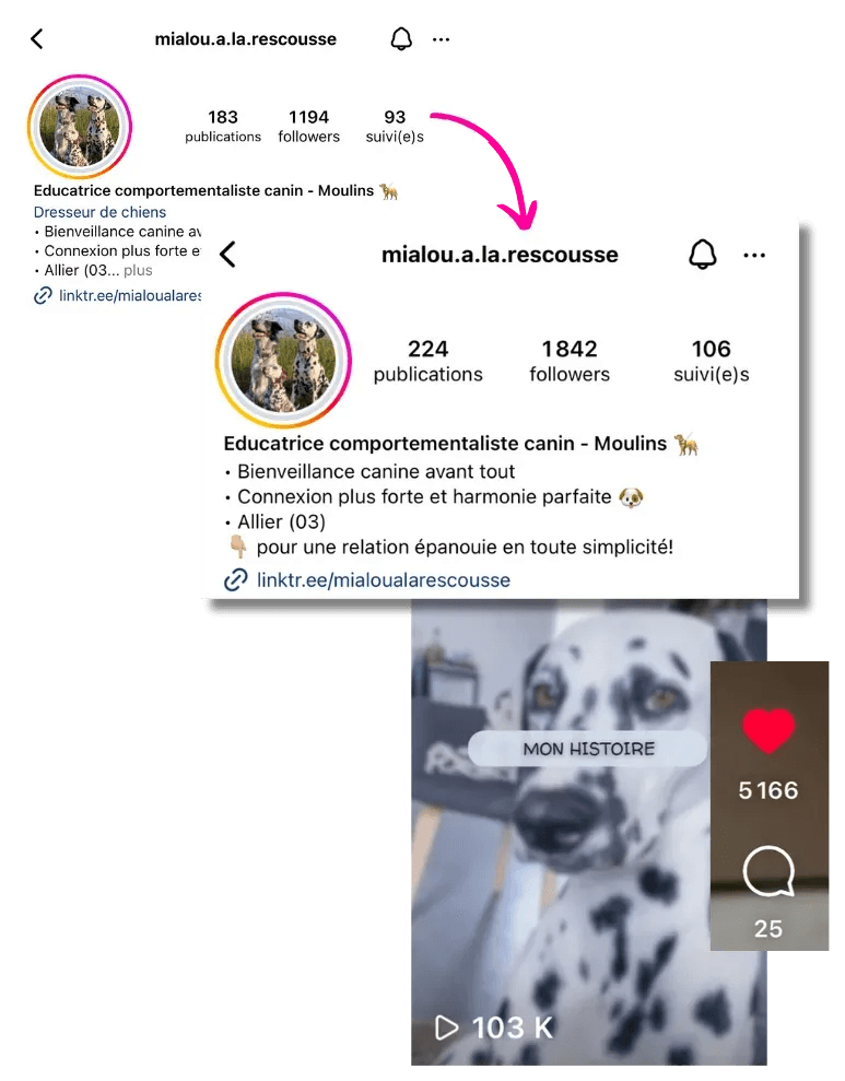 ✓ Mes clientes ont transformé leurs comptes Instagram, passant de bloquées et frustrées à créer des Reels qui génèrent de l'engagement et des abonnements