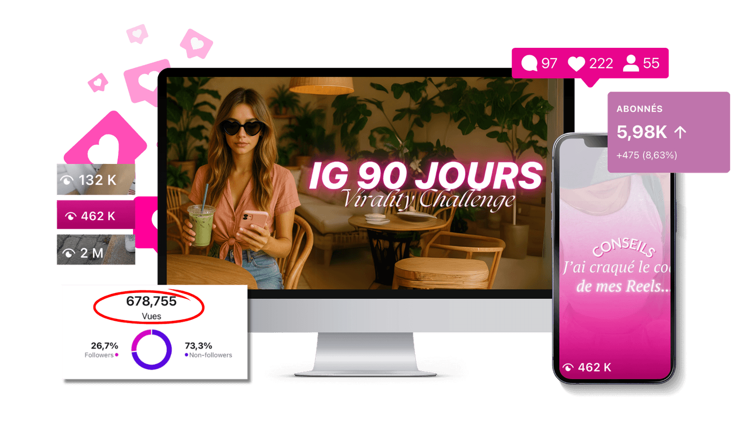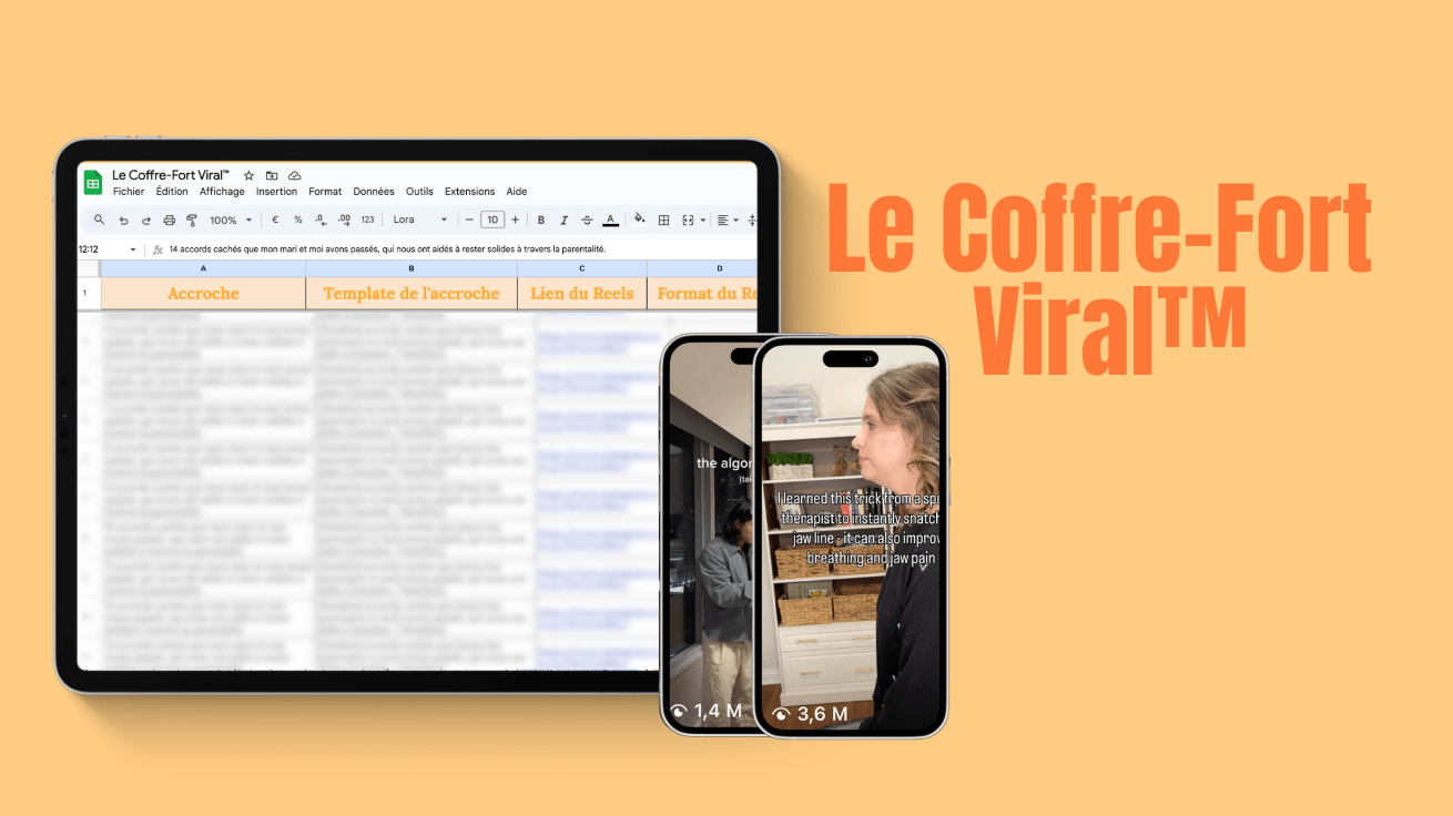 Important : si tu veux gagner des dizaines d’heures chaque mois à ne pas rechercher toi-même des reels viraux pour les reproduire, alors ajoute à ta commande Le Coffre Fort Viral™
